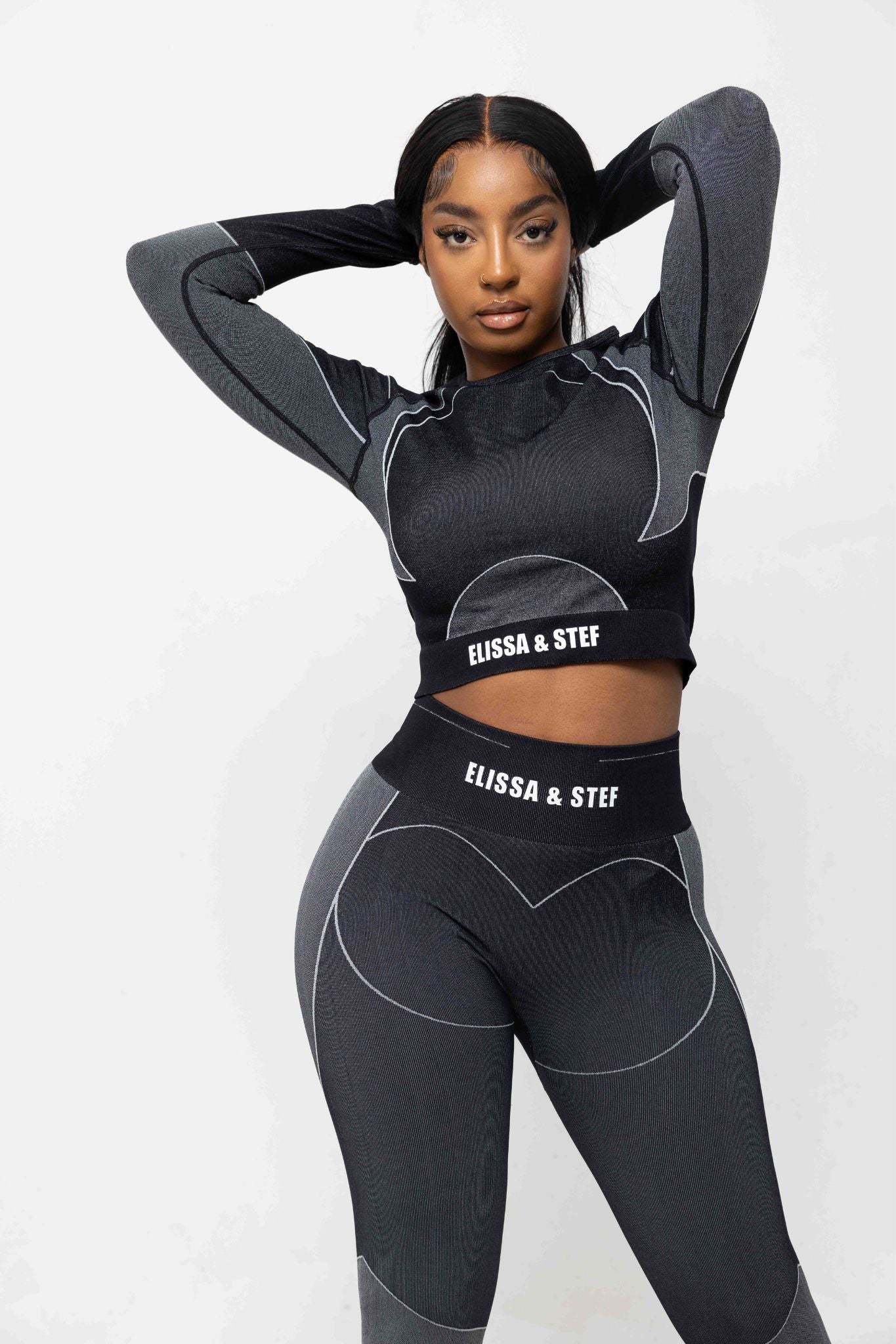 The Elissa & Stef high-waist sports leggings are designed to blend comfort, functionality, and style. Featuring a sleek black design with breathable mesh panels, these leggings are ideal for intense workouts or casual wear. The signature "Elissa & Stef" branding adds a touch of elegance to your activewear wardrobe.